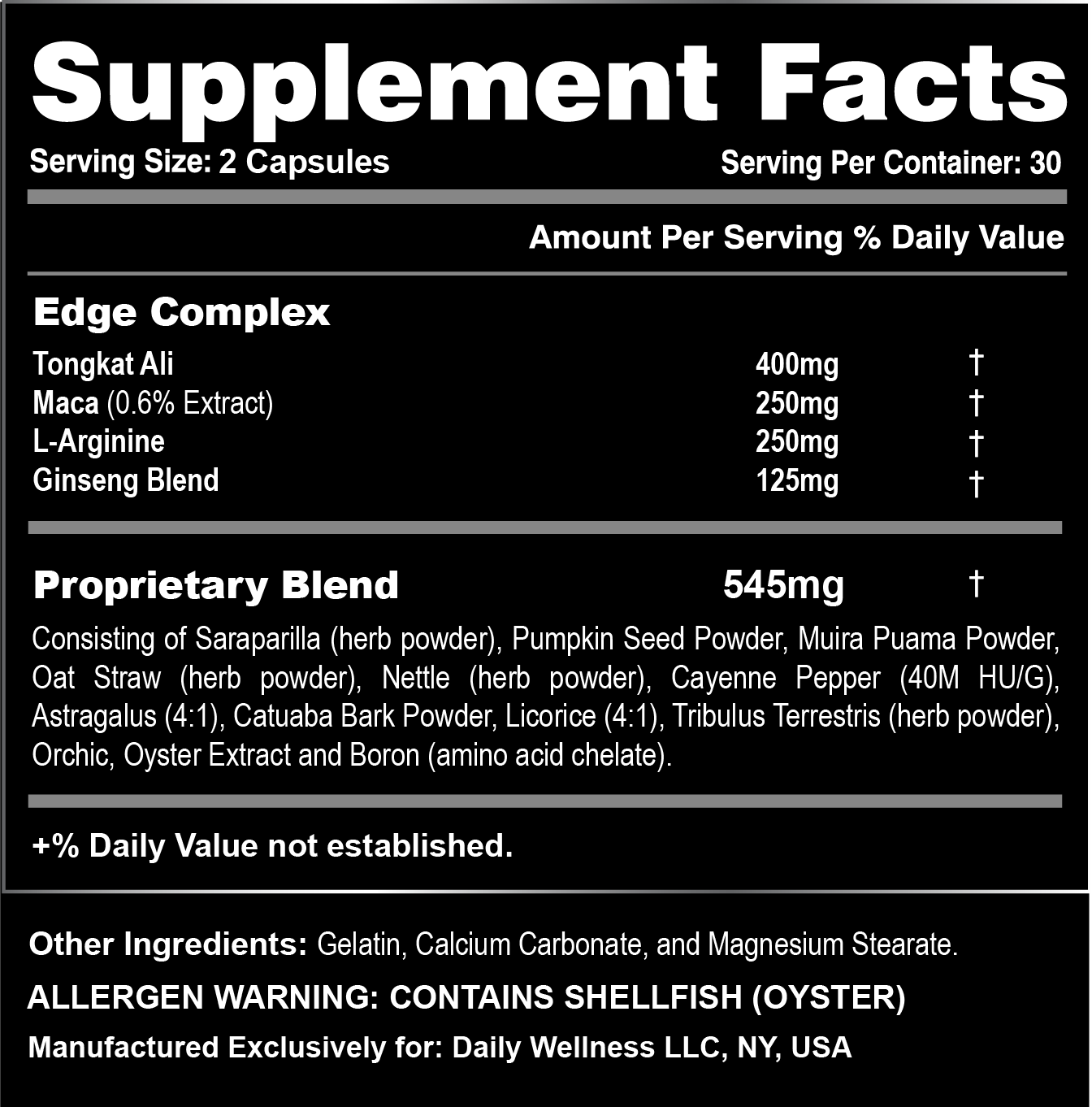 Maca Extract: Elevates mood and libido, promoting increased men's desire and pleasure, along with improved overall well-being.